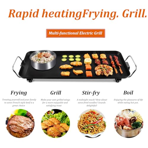 Versatile Outdoor Cooking Experience: Embrace the taste of BBQ anytime with this electric flat top grill that mimics outdoor grills. Perfect for seared steaks, hot chicken, or chargrilled vegetables, our grill brings the delicious flavor of outdoor BBQ to your indoor setting. Ideal for those who enjoy electric grills but prefer or need to cook indoors.