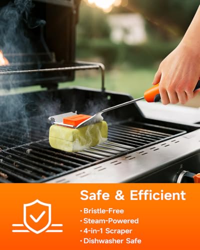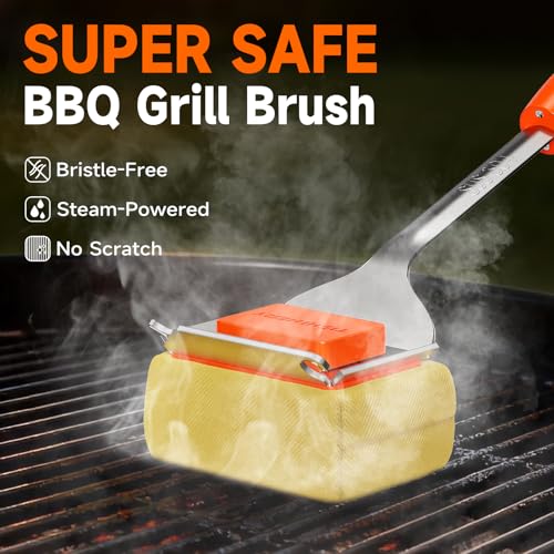 No Bristles, No Worries: Still worried about bristles left on the grill before each BBQ? Use our bristle-free grill brush and steam (just with water and heat, no harsh chemicals) to safely deep-clean your grill, completely eliminating the risk of swallowing wire bristles. Definitely a great alternative to traditional wire brushes