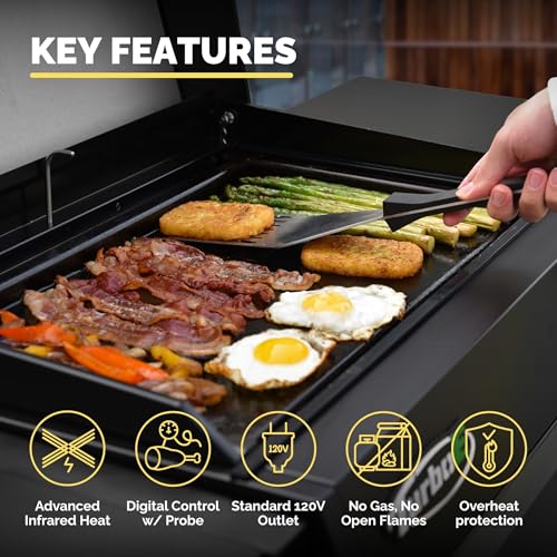 EASY PLUG-IN OPERATION: No propane or charcoal needed — just plug into any standard 120V outlet. Powerful infrared technology ensures quick, even heat across the grill surface.