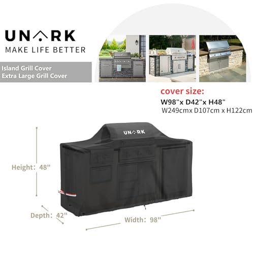 98 Inch Extra Large Grill Cover: Our Island Grill Cover is designed to fit center island BBQ grills measuring 98" H x 42" W x 48" H, ensuring optimal coverage and protection for your outdoor kitchen.