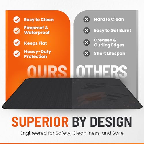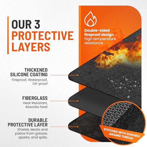 DURABLE LONG-LASTING QUALITY – Crafted with premium materials, our grill pads for outdoor grill cooking are built to withstand wear and tear, resisting tears, curls, and cracks over time. Perfect for BBQs, grills, and outdoor cookouts, it provides reliable protection for decks, patios, lawns, and other surfaces from grease, spills, and stains, ensuring a clean and durable space for countless grilling sessions.