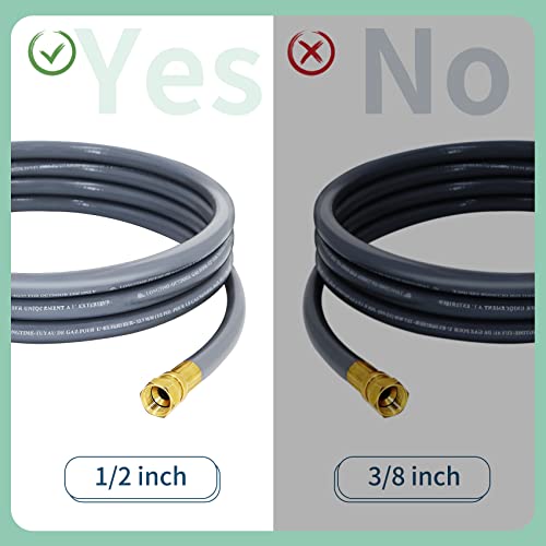 [High quality material] This 12 Feet 1/2 Inch bbq natural gas line hose, the tube body is made of high-quality rubber, and the thread is made of durable solid brass, which is anti-chipping, anti-rust, and very durable. And we also include a solid brass 3/8" Female Flare by 1/2" Male Flare Brass Adapter, and a sealing tape to give you a safe and stable experience.