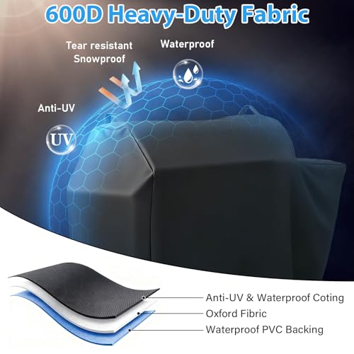 Super Waterproof Material: The grill cover for Rec Tec RT590 grill is made of 600D durable fade-resistant waterproof polyester oxford fabric that won't tear easily and has an extra PVC liner. It can withstand strong winds, rain, storms, strong sunlight, dust, snow, etc. and stay clean