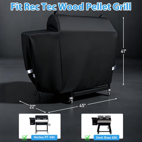 Compalibality: Suitable for Recteq RT-590 Wood Pellet Grills, Rec Teq Deck Boss RT-590 and RT-590 Wood Pellet Smoker Cover, and other pellet grill smoker with similar sizes, Keep your grill looking great?Dimensions?? 45"W x 22"D x 41"H