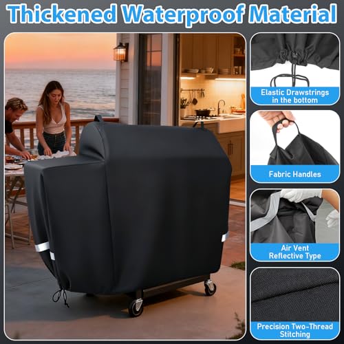 Secure & Windproof Design- Adjustable elastic drawstrings ensure a snug fit that stays put even during strong winds, while hidden air vents reduce condensation and prevent internal rust. No more worries about your ( for Traeger smoker cover ) blowing away—just reliable, secure protection for your investment.