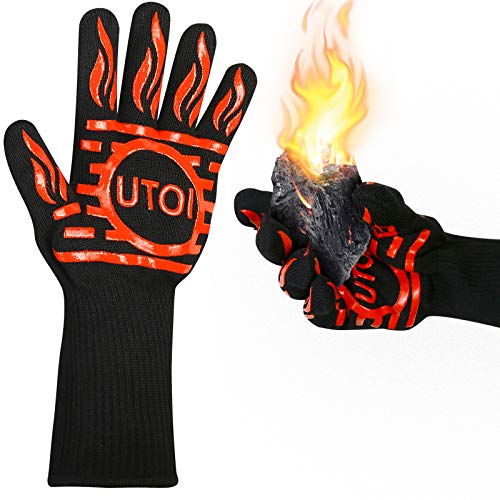 UTOI BBQ Grill Gloves, 1472°F Heat Resistant Barbecue Gloves Oven Mitts for Kitchen Garden BBQ Grilling and Outdoor Cooking Campfire, EN407 Certified, 1 Pair 13 inch Long Extra Forearm Protection