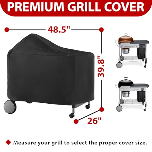 ?Grill Cover Dimension?48.5"W x 26"D x 39.8"H. The grill cover fit for Weber 22" Performer Premium and Deluxe charcoal grills. Please check the size carefully before ordering.