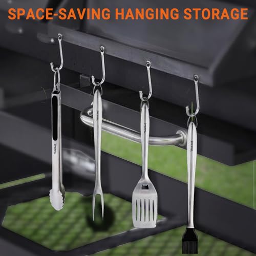 Easy to Clean and Store: All tools are dishwasher safe and come with hanging loops for easy storage, keeping your grilling area organized and clutter-free.