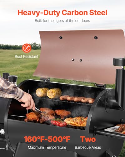 Heavy-Duty Construction: The wood pellet grill smoker is made of heavy-duty carbon steel with a high-quality, high-temperature powder coating on the surface, making it rust-resistant and able to withstand high temperatures (160°F-500°F). It is suitable for frequent outdoor use and can endure the harsh conditions of outdoor environments. The stable structure ensures more secure use