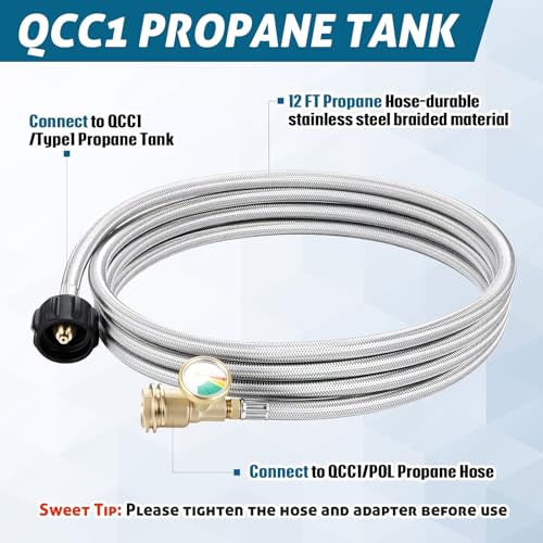 Wide Application: this propane hose with POL to QCC1 adapter connects to a variety of propane tanks, suitable for most grills, heaters, burners, camping stoves, smokers, and other propane equipment; Meet your camping, barbecue, tailgating, heating, and outdoor picnic needs