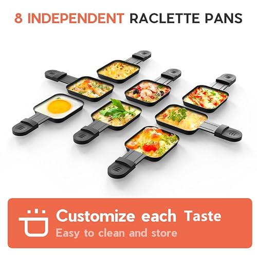 ?[8 RACLETTE PAN]: Our raclette table grill is equipped with 8 independent raclette pans, which can prepare delicious food for multiple people at the same time, and this korean bbq grill can also be used to make cheese, meat sauce, butter, etc. Very suitable for family gatherings. In addition, all the plates can be disassembled independently, which is easy to clean and store.