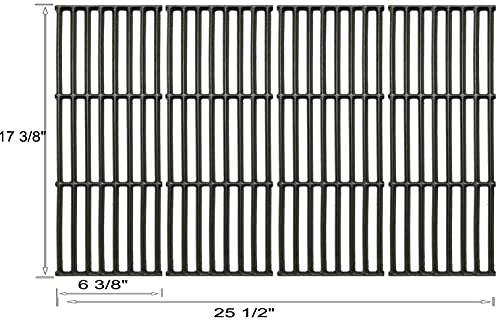 Dimensions:17 3/8" x 6 3/8" Each or 17 3/8" x 25 1/2" Total cooking grid; this item include includes a set of 4 cast iron cooking grill grid grates; ?After-sales service?Before purchasing, please compare with the size and model of the original part. If there is a problem with the product you received, you can contact us at any time and we will deal with it for you.