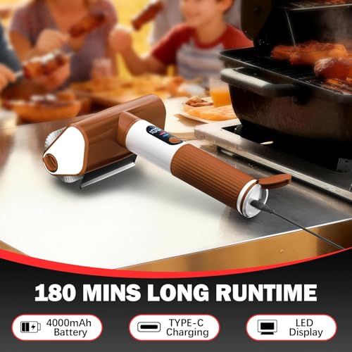 ?Lightweight & Built-in LED Lights? Cordless grill cleaning brush features a lightweight design, ensuring comfortable use for your wrist even during extended cleaning sessions. Built-in LED Lights, dirt and residue on the barbecue grill grate can be clearly spotted even at night. No area missed. Perfect grill accessories for backyard or outdoor camping grilling.