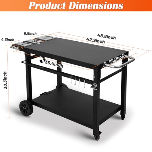 ?Multi-Functional Performer?Serves as: BBQ cart,outdoor kitchen island,pizza oven stand,potting bench and mobile worktable.Seamlessly transitions from indoor prep station to backyard cooking hub for all-season use.