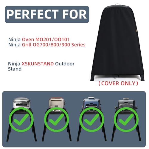 Super Compatibility: This cover is built for Ninja Woodfire Outdoor Grill OG700 Series on stand, for Ninja Woodfire Pro XL Grill OG800 OG900 Series on stand, for Ninja Woodfire Outdoor Oven OO101 Series on stand. Warning: This cover only fits for Ninja XSKUNSTAND Outdoor Stand, but not Ninja XSKSTAND Woodfire Collapsible Stand. Please confirm the model of your appliance and stand before placing order