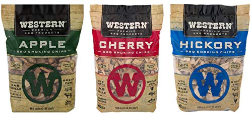 Variety 3 Western Premium BBQ Smoking Chips (Flavors: Apple, Cherry, Hickory), 180 Cubic Inches per bag