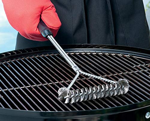 Wire brush to thoroughly clean grime and grease from the grill. Handle end suspension hole design for easy storage and suspension.