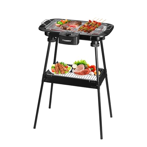 ?2-IN-1 BBQ DESIGN?: The 2-in-1 electric grill offers you two convenient ways to use the grill, one is to stand freely with all four legs, and the other is to remove the legs and place them on the table. Compared to traditional grills, the electric grill ensures smoke-free indoor cooking so that you can enjoy grilling anywhere, anytime, all year round, whether indoors or outdoors.