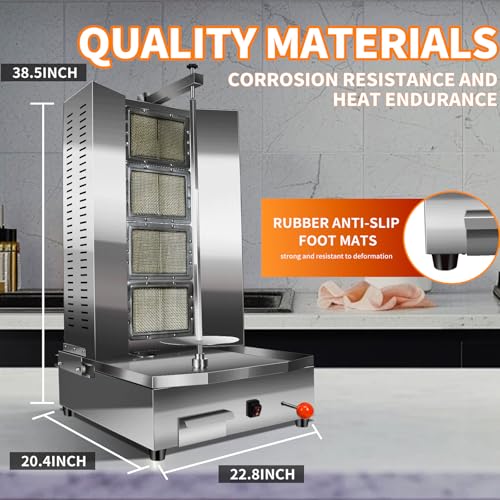 The Shawarma Vertical Rotisserie is manually ignited and uses propane gas for the heating element, providing high power heat in a short period of time and heating temperatures that can easily reach 400°F, allowing you to grill steaks, shawarma meats and vegetables more efficiently. It will be a great helper in the kitchen.