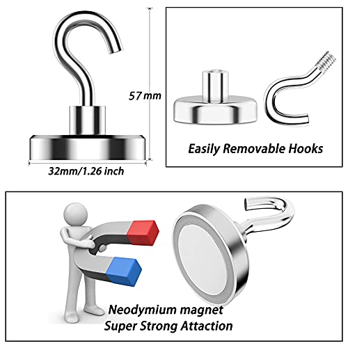 ?Package or 100% Satisfaction Guarantee?- 8 Pack Hanging Magnetic Hooks D32mm in total; We guarantee that NO SATISFY, NO REASON FOR RETURN. Please contact us if you have quality problems, we are very pleased to assist you to refund or make replacement.