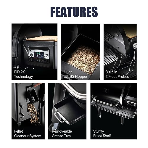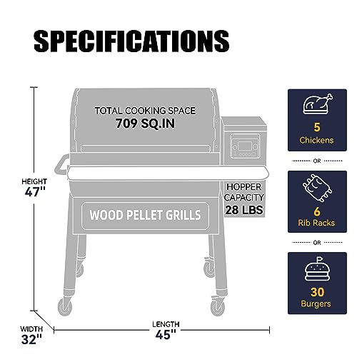 UNPARALLELED GRILLING COVENIENCE - 709 sq in grilling space, 28 lbs huge hopper capacity, pellet clean-out system, removable grease tray. Super easy grilling and cleaning.